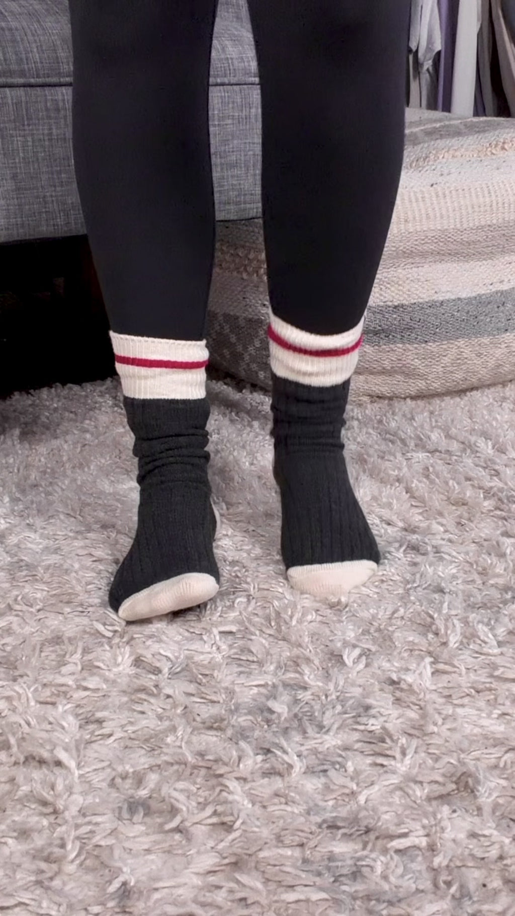 Blended Thread Cabin Socks! Breathable, soft stretchy knit & perfectly slouchy, these socks are made with a classic retro stripe, comfy ribbed texture with a lot of stretch! Perfect with boots, leggings, joggers or just lounging around the house.
